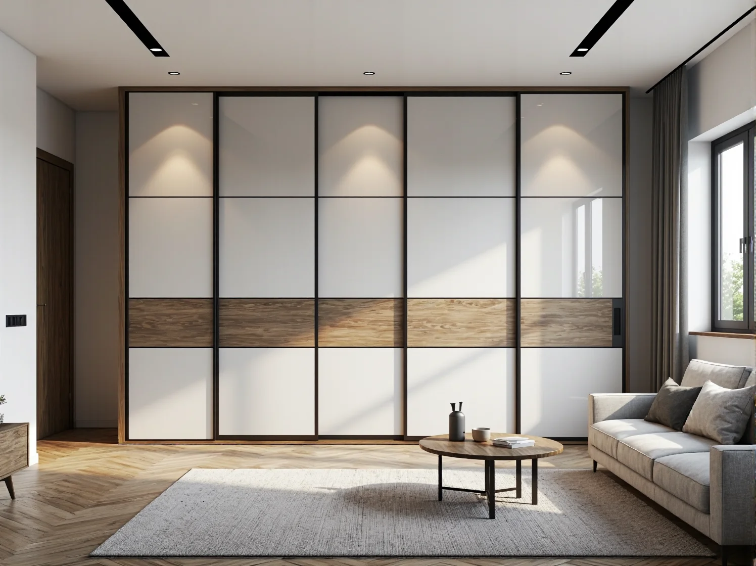 W małych przestrzeniach nadmiar detali może drażnić. Szafy przesuwne z systemem bezuchwytowym (np. z frezowanymi krawędziami lub systemami typu push-to-open na froncie zewnętrznym) wyglądają jak gładka ściana. Wybierając matowe wykończenie w kolorze białym, jasnoszarym lub beżowym, sprawiamy, że szafa staje się tłem dla reszty wyposażenia, a nie jego dominującym punktem. To klucz do zachowania skandynawskiego ładu w kawalerce.