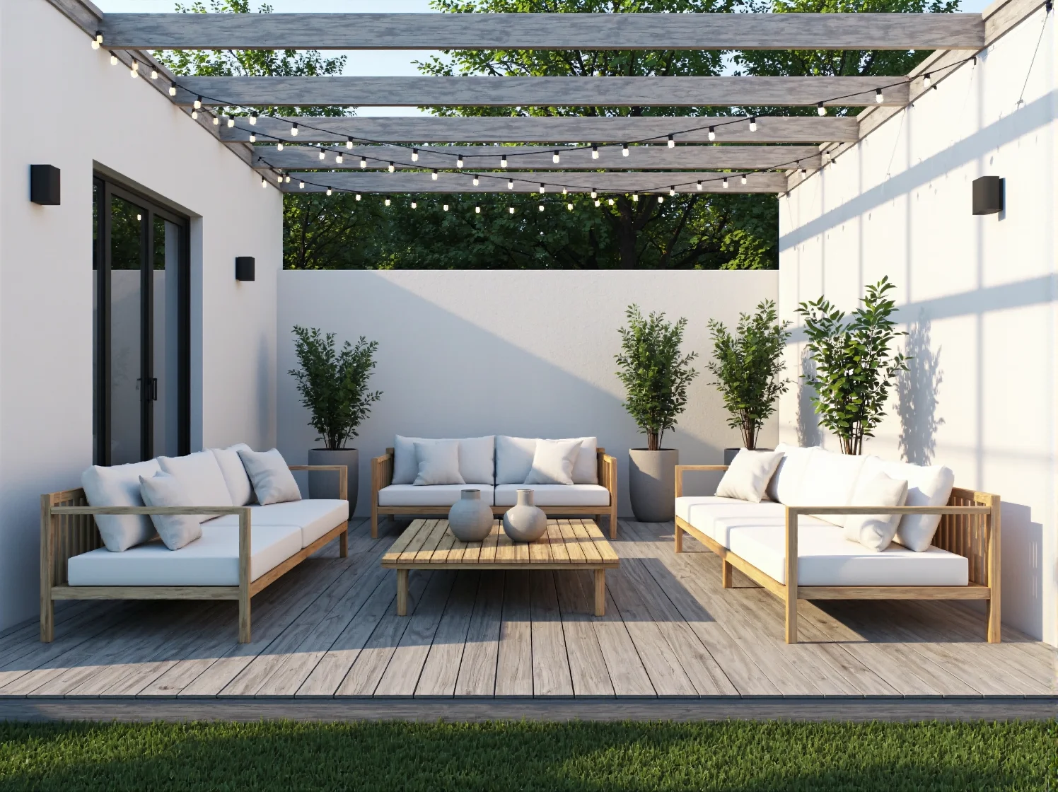 Jak urządzić taras w stylu skandynawskim z lampami LED w odcieniach bieli i szarości?