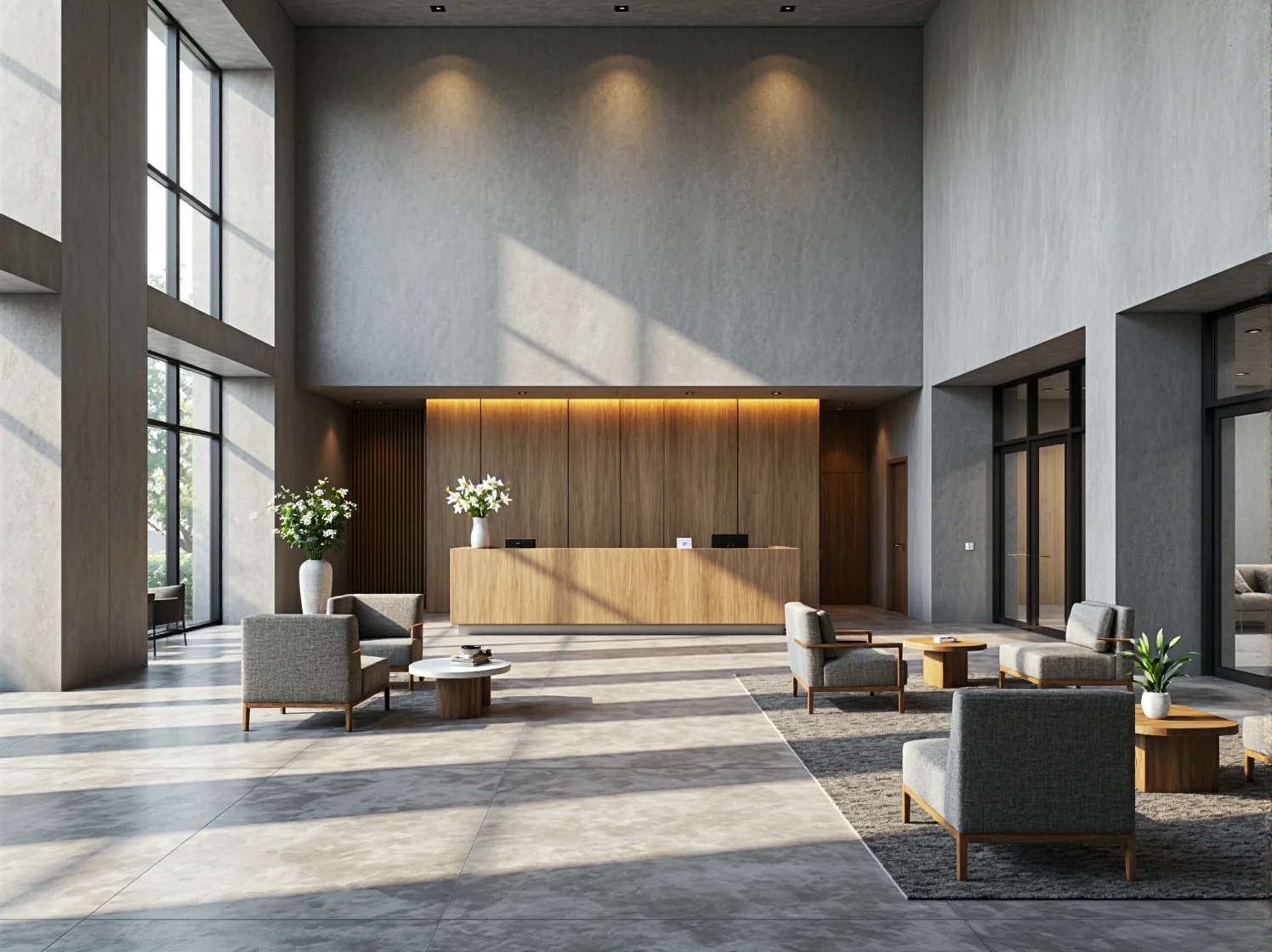 Projektując lobby, nie możemy zapominać o zmysłach innych niż wzrok. Minimalistyczne wnętrza, ze względu na dużą ilość twardych powierzchni (kamień, szkło), mogą mieć problem z echem. Rozwiązaniem są wspomniane wcześniej drewniane panele, dyskretne panele akustyczne na sufitach oraz wysokiej jakości dywany w strefach wypoczynkowych, które wygłuszą kroki i rozmowy.