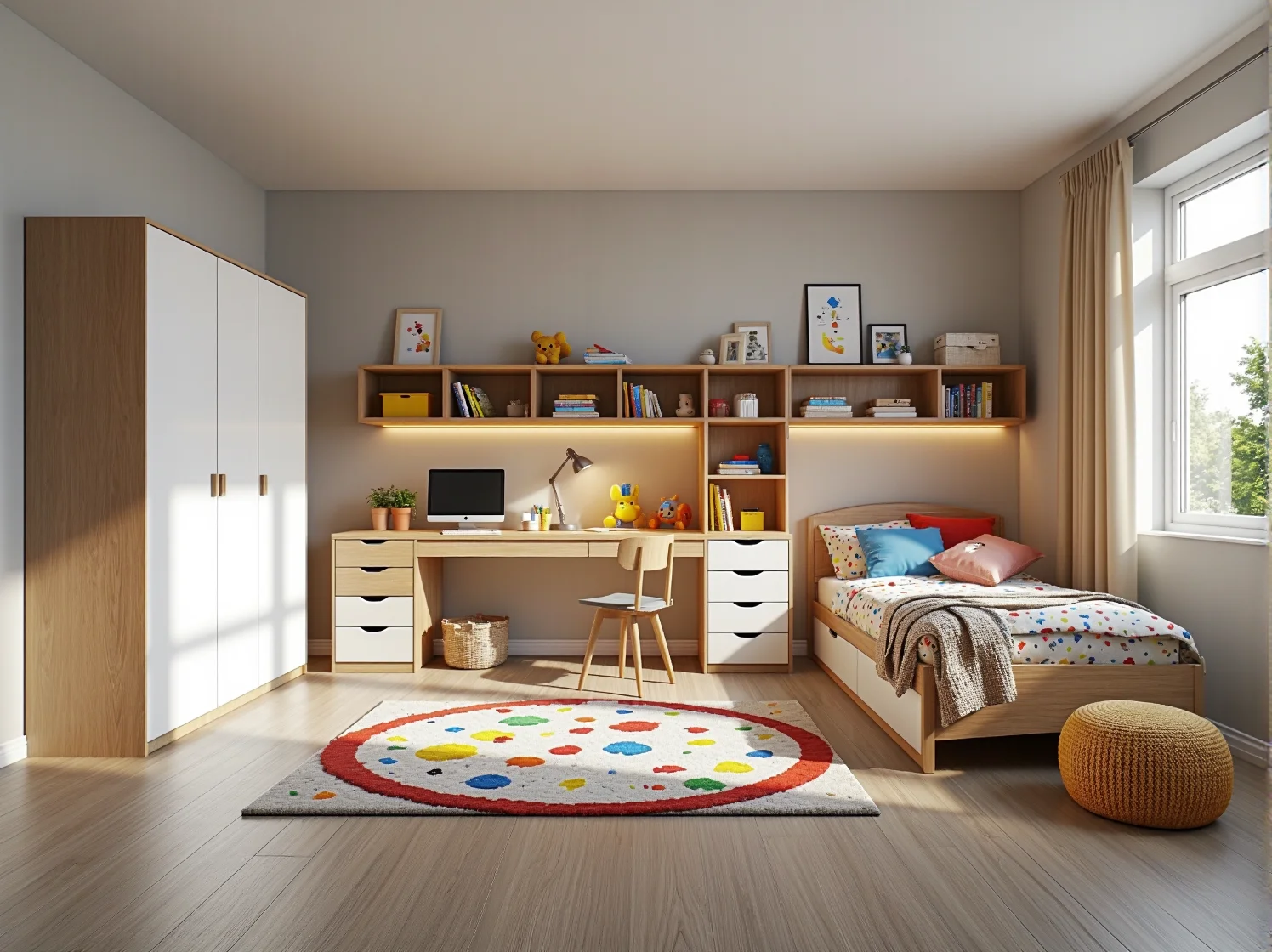 Dzieci uwielbiają intensywne kolory i motywy bajkowe. Rodzice zazwyczaj wolą stonowane barwy, które łatwiej utrzymać w czystości i które nie wyjdą z mody po roku. Jak znaleźć kompromis? Najlepiej wybrać bazę meblową w neutralnych kolorach (biel, szarość, jasne drewno), a charakter pokoju nadać poprzez dodatki: kolorowe uchwyty szafek, tekstylia, naklejki ścienne czy dywany. Takie podejście pozwala na szybką i tanią metamorfozę pokoju, gdy dziecko dorośnie i nagle z fana dinozaurów stanie się miłośnikiem kosmosu.